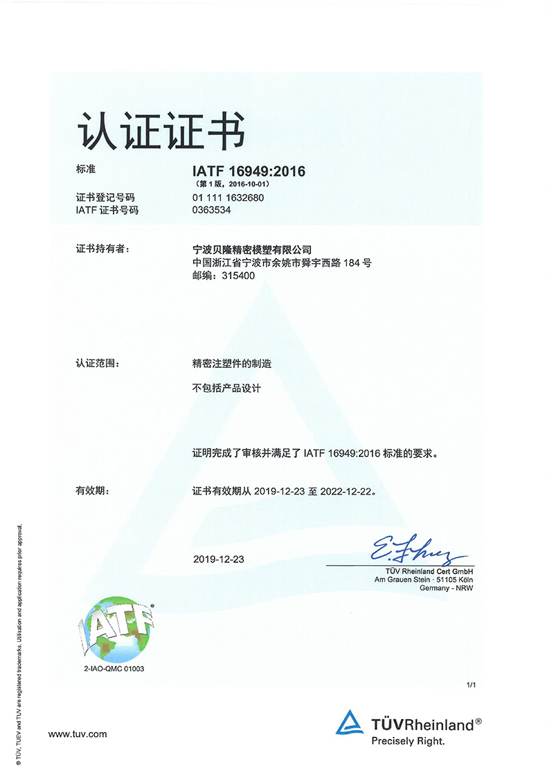 貝隆精密科技股份有限公司(股票代碼:301567)成立于2007年,坐落于中國模具之鄉(xiāng)、浙東名城浙江省余姚市,公司是專業(yè)從事精密注塑、沖壓、埋入成型、模具研發(fā)與制造的高新技術(shù)企業(yè)。被評定為國家制造業(yè)單項冠軍、國家級專精特新小巨人企業(yè)、國家知識產(chǎn)權(quán)優(yōu)勢企業(yè)。